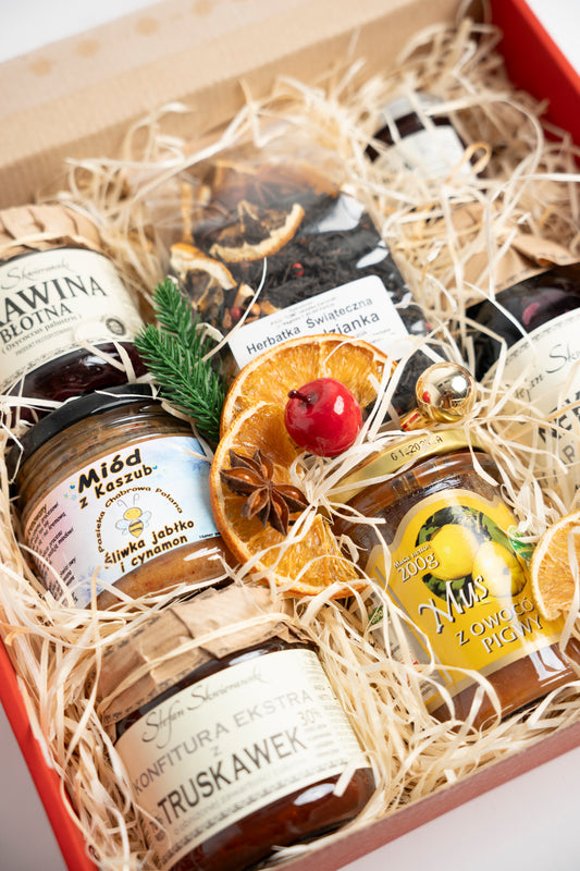 Box  prezentowy jest wypełniony po brzeg produktami premium z małych i rodzinnych kaszubskich manufaktur, ale  nie tylko :)